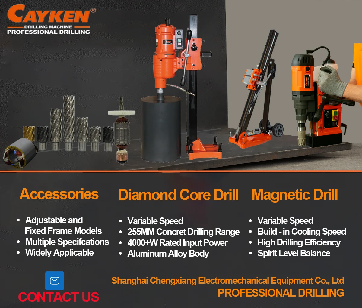 Shanghai Chengxiang Electromechanical Equipment CO., LTD is a collection of scientific research , production and sales of high-tech enterprises, the main products are Diamond drilling machines, wall cutting machine, magnetic drill ( core drilling ) drilling and other industrial machinery. We are professional manufacturer of diamond core drill, magnetic drill and concrete wall cutters for more than 20 years, has export to more than 100 countries. We acquired CE, UL and ROSH certification. We can provide high quality core drills with competitive price, prompt delivery and best after-sale service, we supply free spare parts within warranty period.